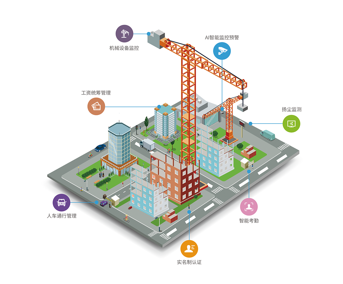 汉王智慧工地是根据住建部工地管理相关标准,结合施工现场实际需求,利用实名制管理、人脸识别验证、重大机械管理、扬尘检测、车牌识别等技术资源,实现建筑行业监管信息化一体化工作平台