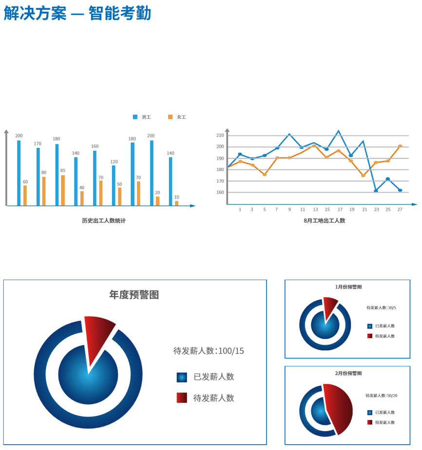 通过对系统中的项目信息、人员信息、设备信息进行关联,将施工安全管理思想注入系统设计,通过不同功能模块对数据进行自动统计、分析、判断,按要求产生各类图表及详细信息,供监管人员查看,达到加强监管,杜绝隐患的目的。系统包括监管软件系统和安装在项目部的人脸识别终端软硬件系统,并可依照住建部门的要求进行软件和硬件的二次开发和优化,同时包括完整的网络维护和售后服务