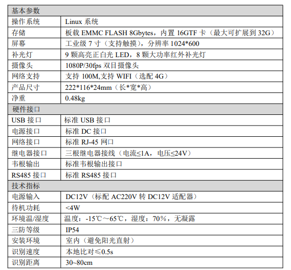 活体检测 本产品支持红外活体检测,活体判断的打开或关闭由客户设置。