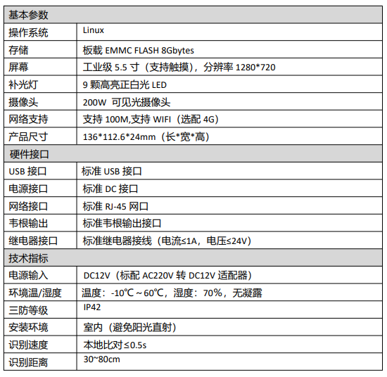  市场定位:人脸识别考勤市场  使用场景:广泛应用于智能楼宇、智慧校园、企事业单位等复杂场景的设备。